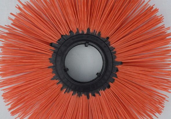 Диск щеточный полипропиленовый 120х550 имеет наружный диаметр в 550 мм. В процессе работы ворс на дисковой щетке равномерно истирается об обрабатываемую поверхность в следствии чего внешний диаметр щеточного диска уменьшается. Темп износа щеточного диска зависит от следующих причин - качество исходного сырья из которого изготовлен диск щеточный, тип обрабатываемой поверхности, время сезона, внешняя температура среды, оптимальная настройка щеточного оборудования при помощи регулировочных винтов опорных колес.