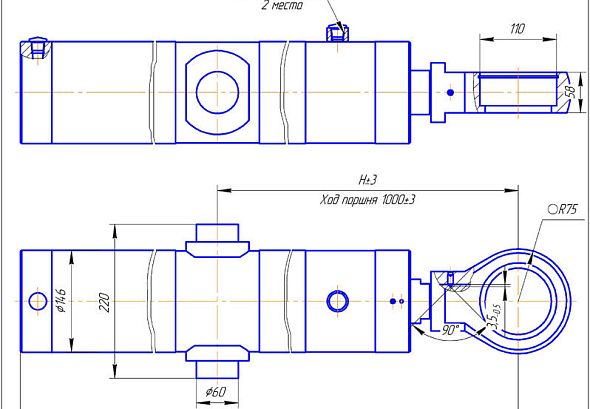 Г/Ц подъема отвала коммунального трактора.Гидроцилиндр ЦГ-125.63х1000.37 выноса тяговой рамы автогрейдера ДЗ-298.