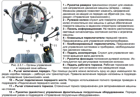• трансмиссия – полуавтоматическая, гидромеханическая, включающая в себя гидротрансформатор (ГТР) и ступенчатую реверсивную коробку передач с неподвижными осями валов, с шестернями постоянного зацепления и гидроподжимными муфтами переключения, имеющую по две передачи для движения вперед и назад и обеспечивающая на каждой из передач автоматическое бесступенчатое изменение тягового усилия в зависимости от нагрузки;